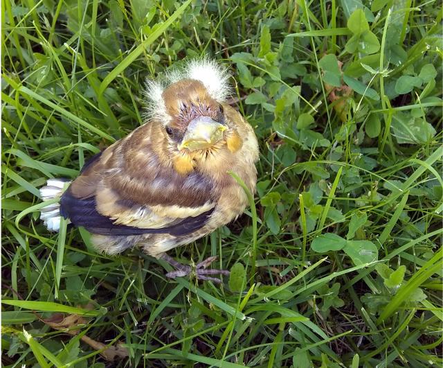 Den här lilla fågelungen kämpade sig fram genom klövern för ett par somrar sedan. Det var ingen skrämd stackare, snarare en kaxig lite typ. Hoppas att det fanns föräldrar i närheten.